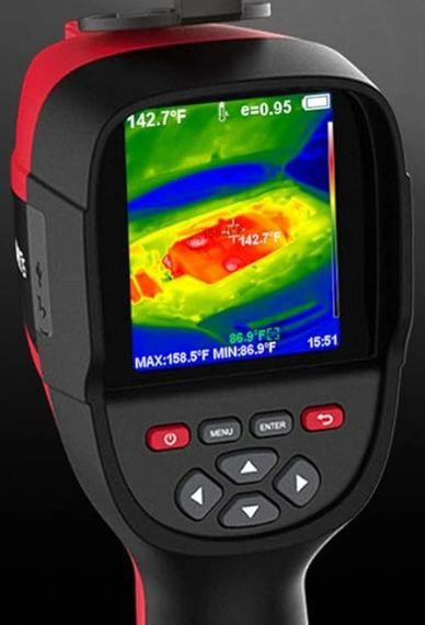 A thermal camera takes you beyond the limitations of single-spot IR thermometers, allowing you to see the hot and cold spots quickly and accurately. You can record the images and their temperature, or take still shots to save as evidence.
